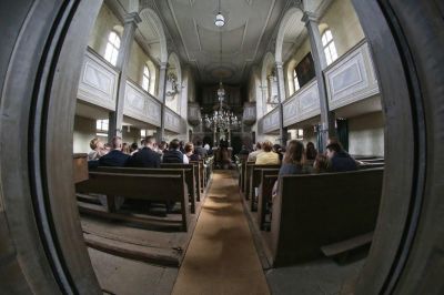 Nun sind der Altar und der untere Kircheninnenraum an der Reihe. Vor allem die dem Altar beigestellten, marmoriert gefärbten Holzsäulen sind in einem schlimmen Zustand. Wenn der Altar fertig ist, werden rechts und links die Bilder der Reformationsväter Luther und Melanchthon wieder aufgehängt werden. Und dass noch vor dem 500. Jahrestag der Reformation.