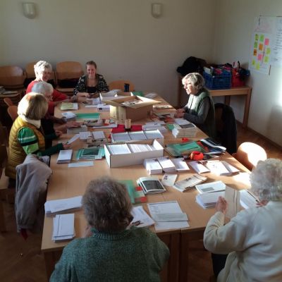 Ein ganz normaler Mittwoch im Lockwitzer Pfarrhaus? Nicht ganz. An diesem Novembertag sah es hier eher nach einem vorweihnachtlichen Postamt aus. Engagierte Menschen aus der Gemeinde waren unserem Aufruf gefolgt und trafen sich zur großen Spendenbrief-Aktion.