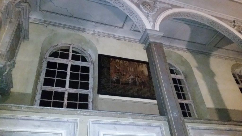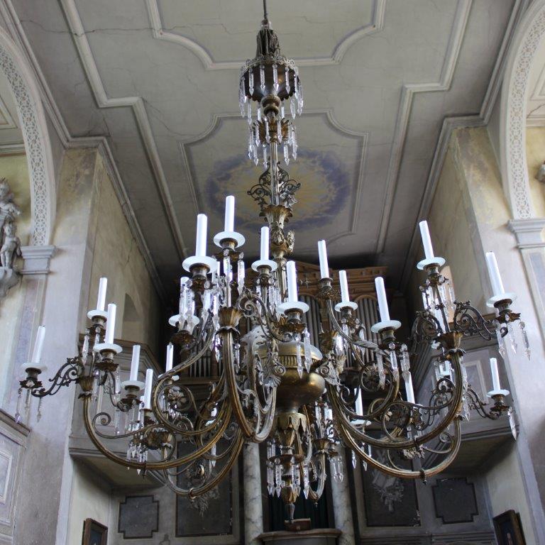 Am Leuchter fehlen viele Teile des Kristallbehangs. Nur zwei elektrische Lampen sorgen für schummriges Licht in der Kirche. Treppen sind ausgetreten, Risse durchziehen den Putz. An Bildern, Altar und Wänden blättert die verblichene Farbe ab.